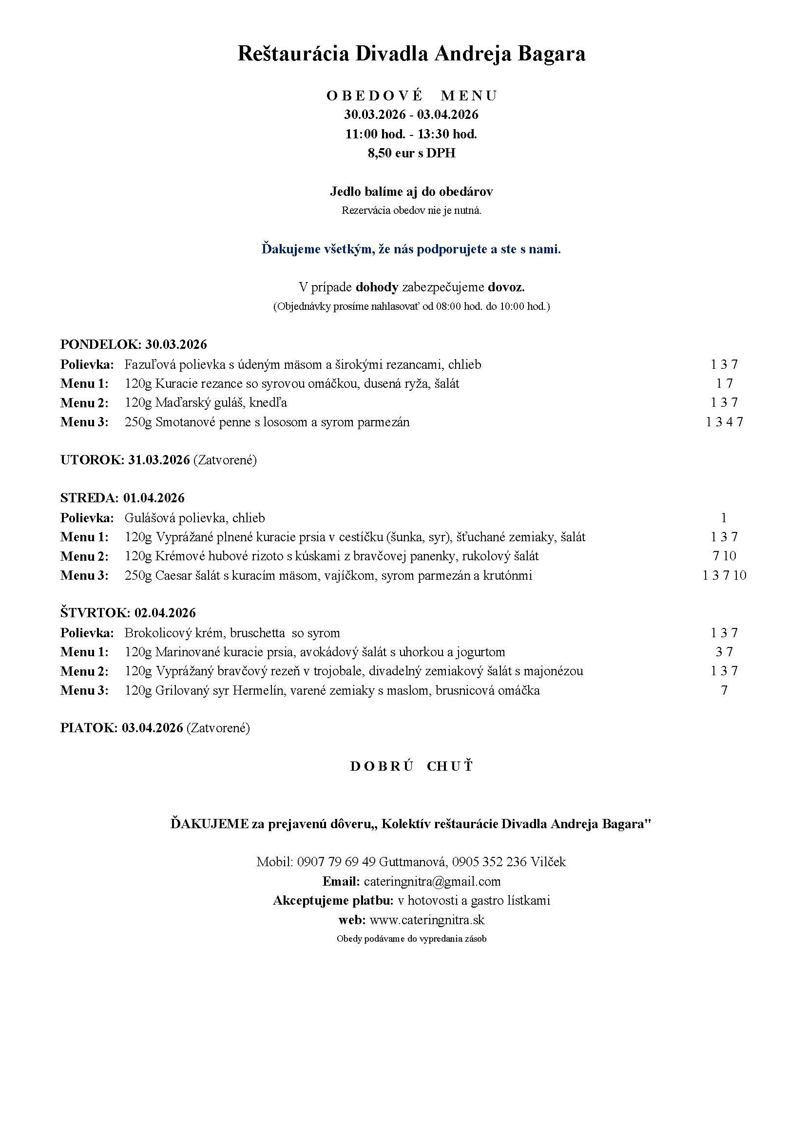 - Rezervácia obedov nie je nutná.