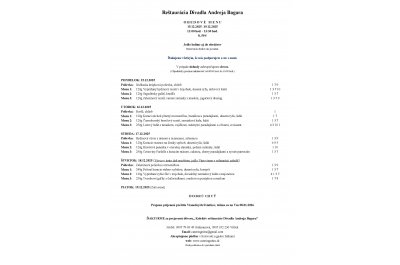 - Menu 2: 150g/180g Pečená bravčová krkovička, dusená kapusta, domáca knedľa(1,3,7)........................................7,70 €