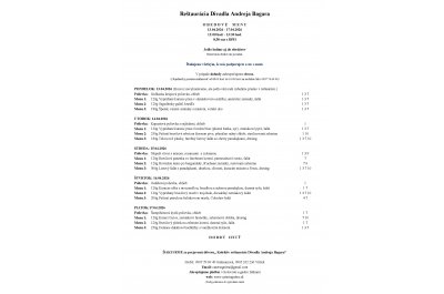 - Menu 2: 150g/200g/80g Bravčovo-kuracie rezančeky, zemiakové placky, kyslá obloha (1,3)